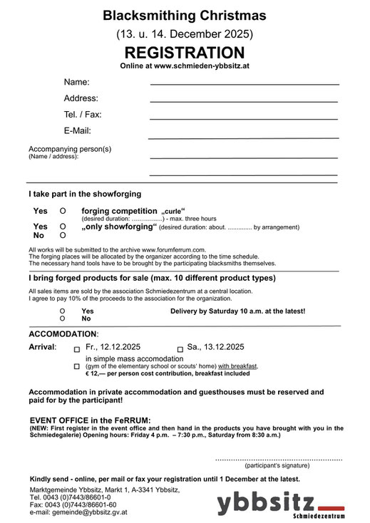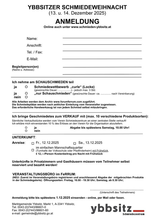 die Anmeldung für die diesjährige Flammende Schmiedeweihnacht in Ybbsitz ist nun geöffnet.